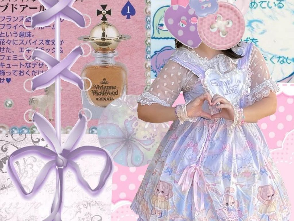 A pinwork collage post celebrating Lolita fashion, a Japanese subculture characterized by clothing inspired from Victorian and Rococo styles. This unique style collaboration is often associated with the Harajuku neighborhood of Tokyo and was a way for Japanese women to express their femininity and individuality.